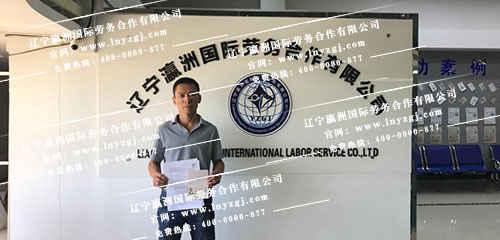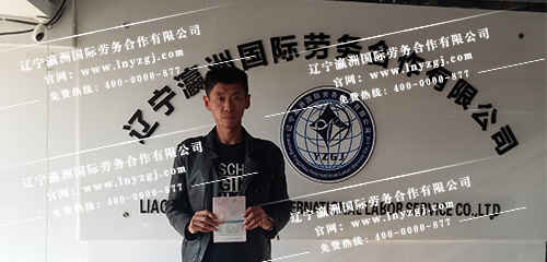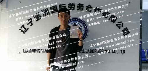 恭喜遼寧大連的于先生已成功入境,你的滿意就是我們******的工作動力,瀛洲國際全體員工祝你在國外工作順利,錢賺多多!